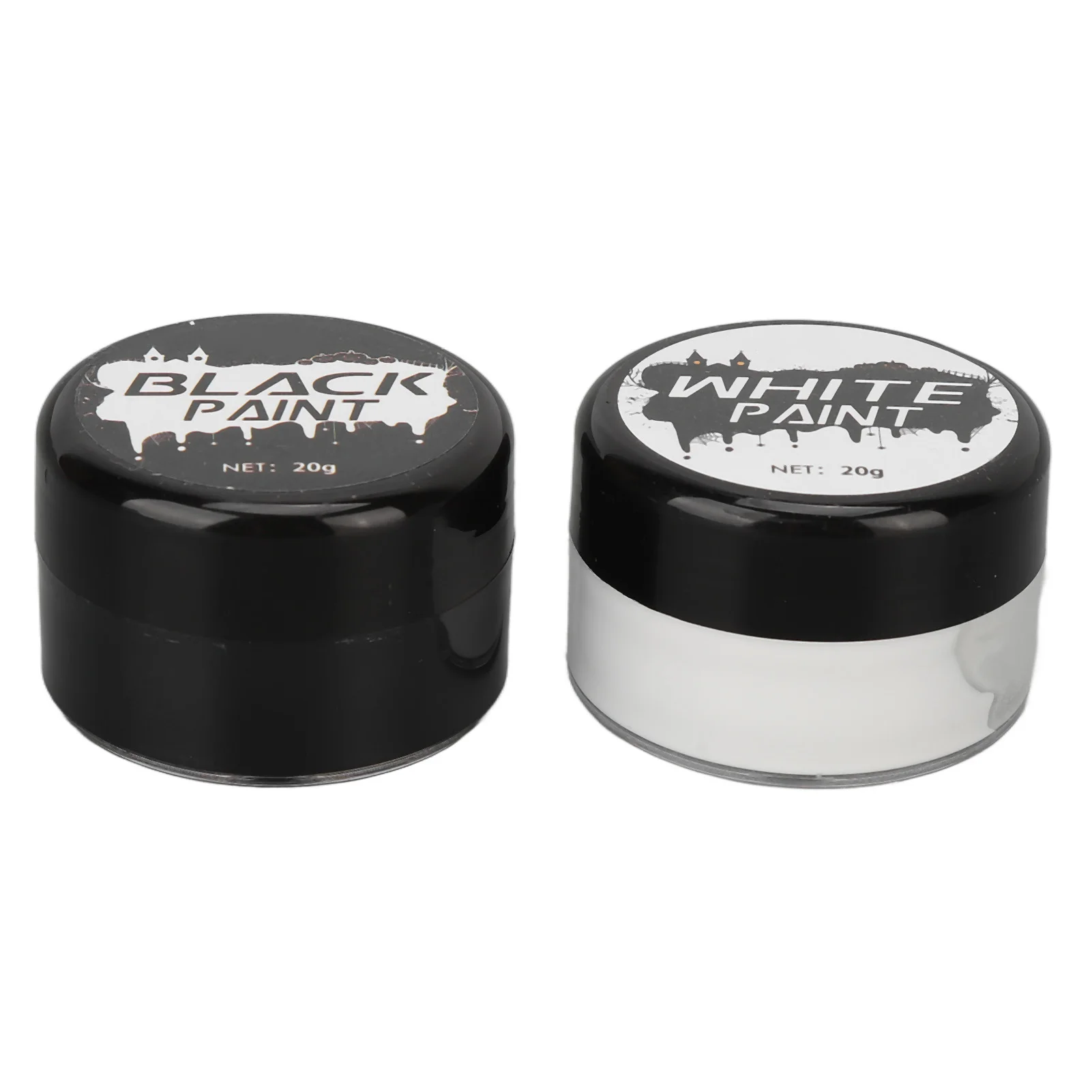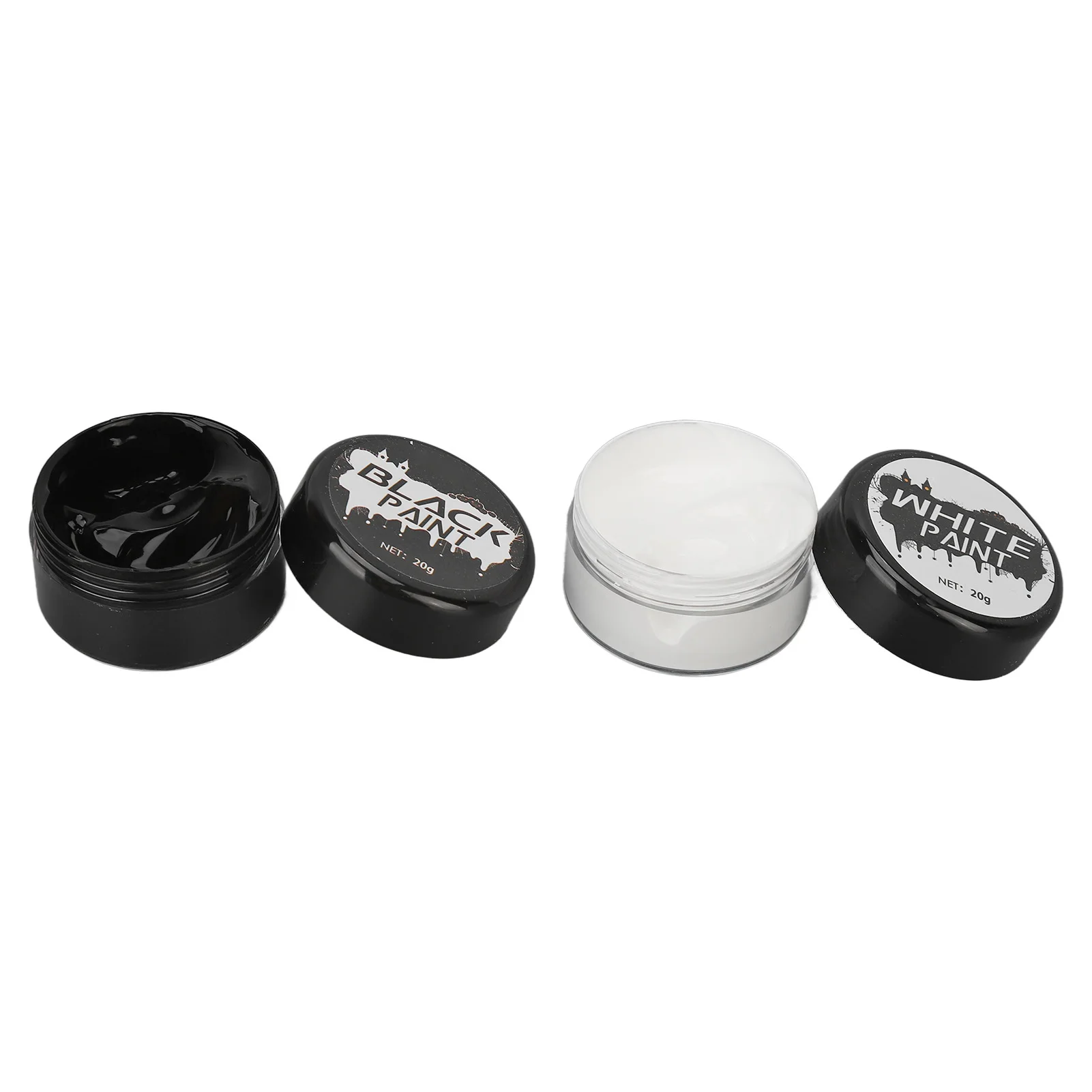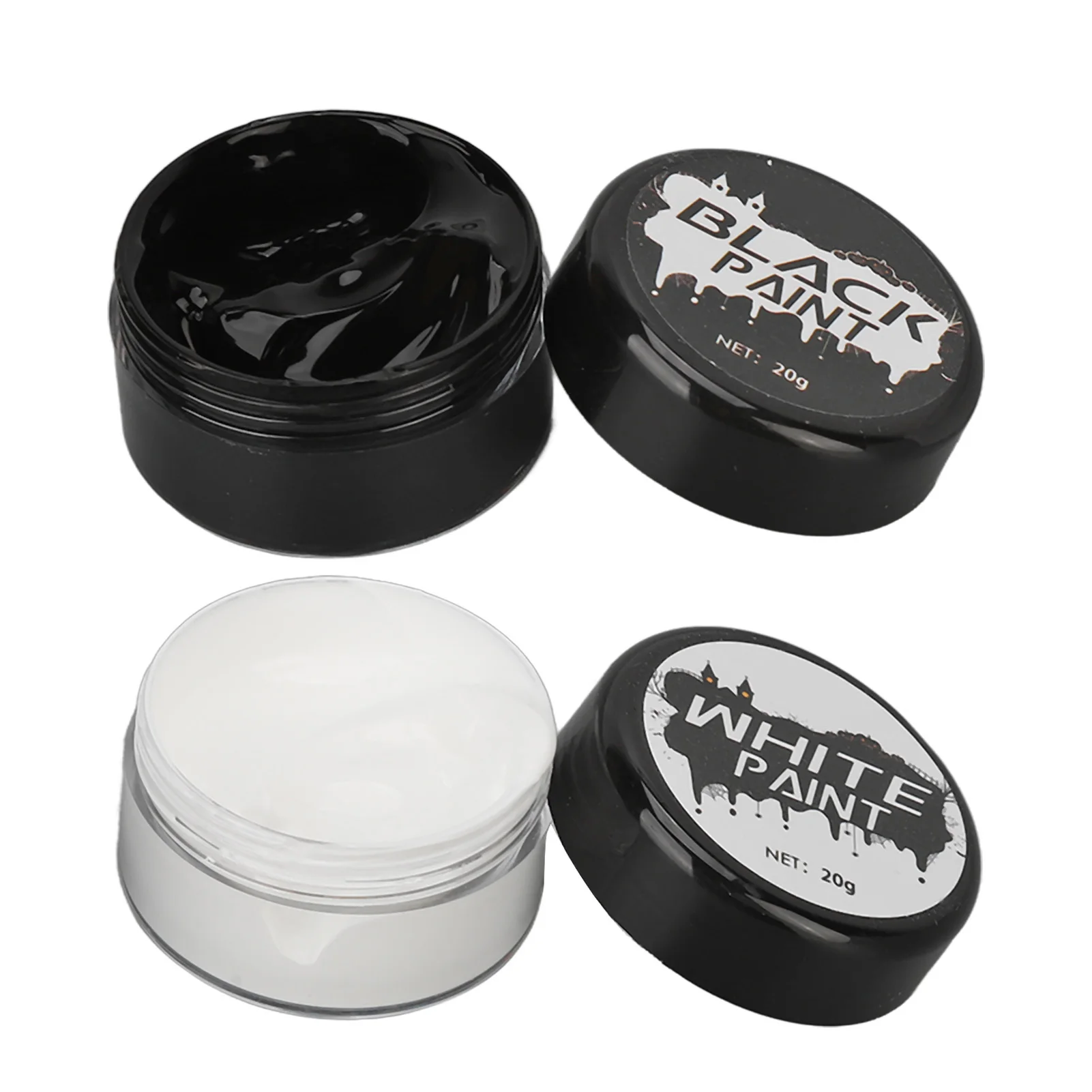 2PCS Halloween Face Painting Kit Highly Pigmented Face Body Brus Paint Black and White for DIY Cosplay Theme Parties Body Makeup